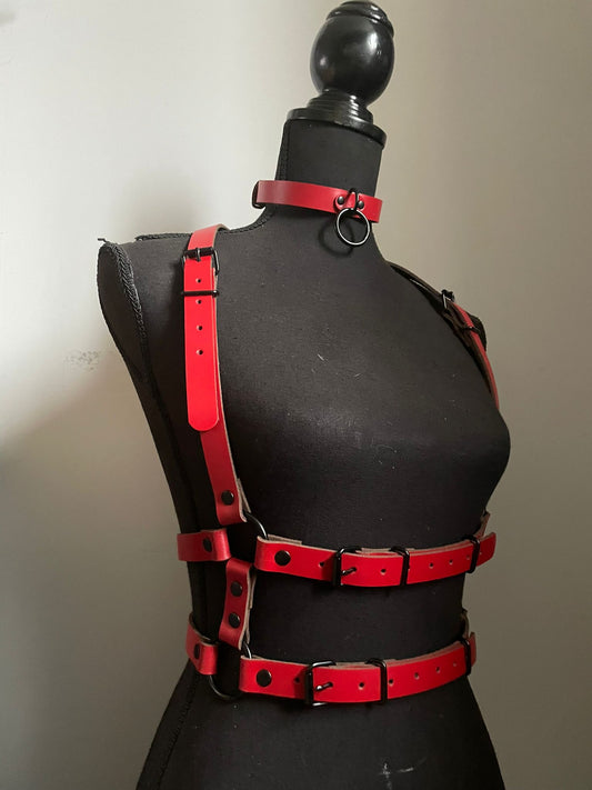 Red Leather Waist Harness - Versatile and Edgy - Handmade