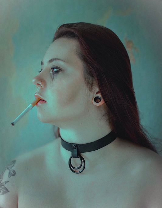 Genuine Leather Double O-Ring Choker | All Black | Alternative Accessories