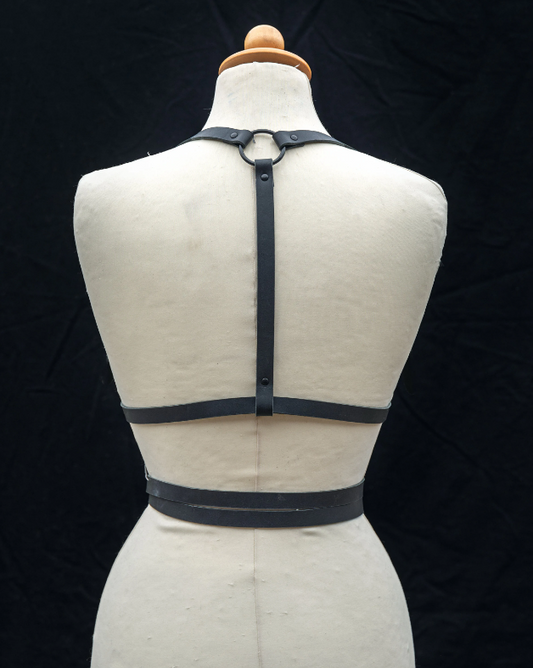 All Black Leather Harness with Black Hardware - Gothic Fetish Accessory